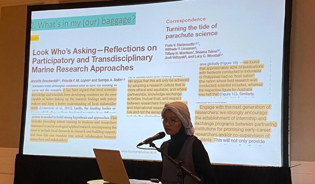 Arida Fauziyah, S.Si., M.Sc. as a representative of the Faculty of Forestry, Hasanuddin University and part of the OORI expert team on this occasion presented the collaboration plan of the Faculty of Forestry, Hasanuddin University with the Oceans and Lakes Master Program for capacity building activities in 2023.