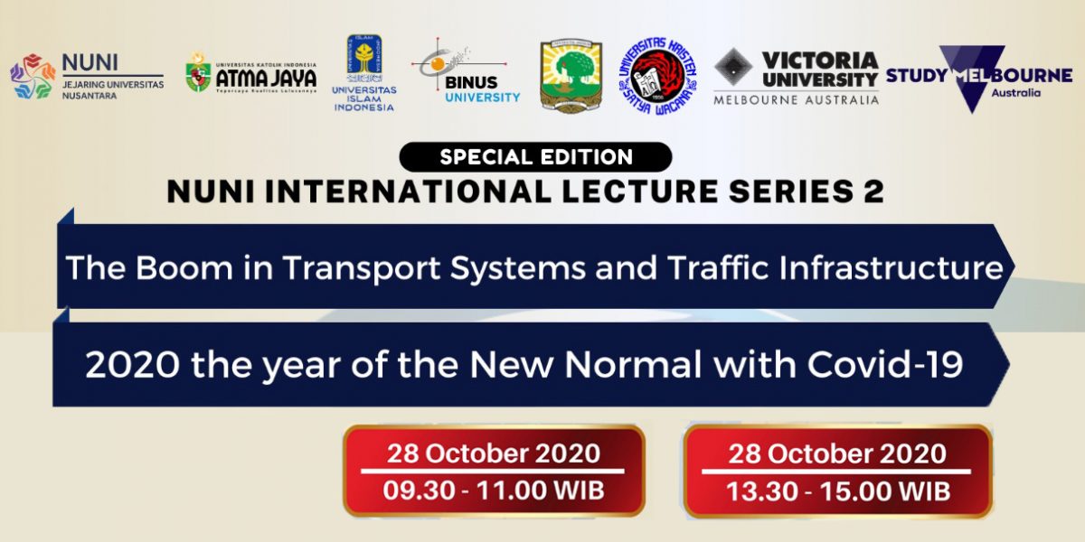 NUNI International Lecture series 2 Live via Zoom Meeting on 28 October 2020, 09.30-15.00. There will be 2 lecture: The Boom in Transport Systems and Traffic Infrastructure 2020 The Year of The New Normal with COVID-19