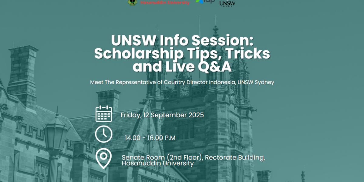 🌏✨ INFO SESSION: Study Overseas & Scholarship Opportunity ✨🌏 Hasanuddin University through the International Office (IO), in collaboration with IDP and the University of New South Wales (UNSW) Sydney, proudly presents an Info Session for students who aspire to continue their studies abroad and explore various scholarship opportunities. 🎓🌟 📌 Special Session: Get exclusive insights […]