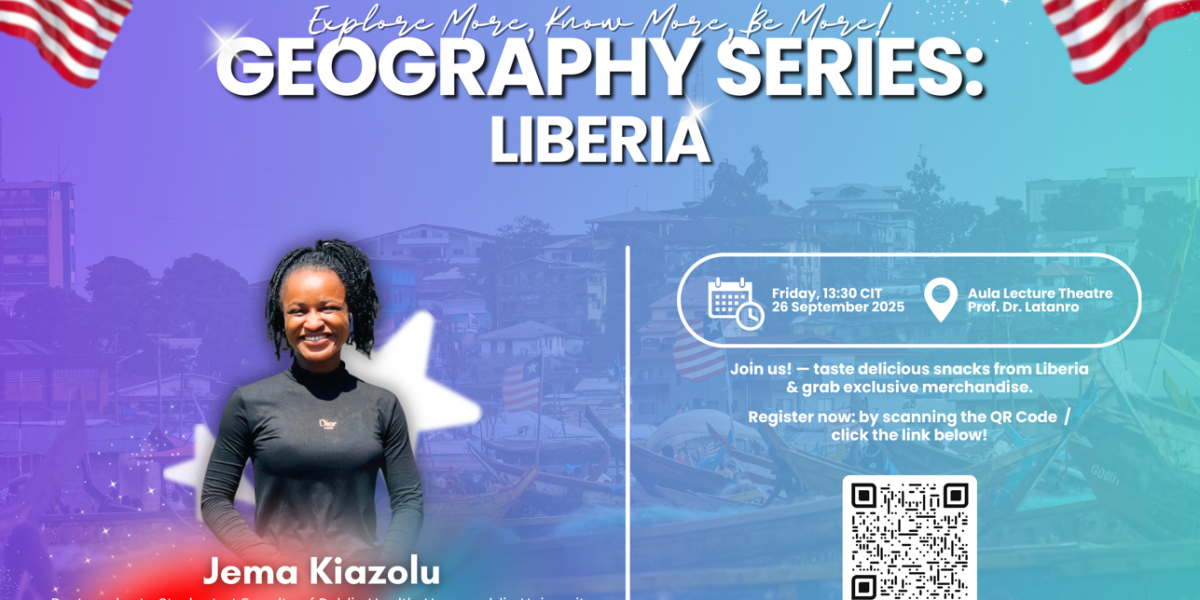#GeoSeries September 2025 by Jema Kiazolu from Liberia 🌍 GEOGRAPHY SERIES: LIBERIA 🌍 Curious about Liberia? Join us in this session of the Geography Series to experience its stories, culture, and unique way of life. 📍 Venue : Aula Lecture Theatre Prof. Dr. Latanro 🗓️ Date : 13:30 CIT – Friday, 26 September 2025 🔗 […]