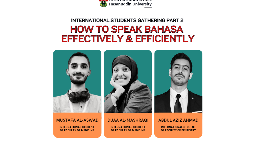 Dear International Students. We are pleased to invite you to our International Student Gathering #2, Sharing Session: “How to Speak Bahasa Effectively & Efficiently”, and also Iftar Party on this Wednesday, 12 April 2023 at 5 pm at Ramsis Hall. It will be a pleasure for us to have you.