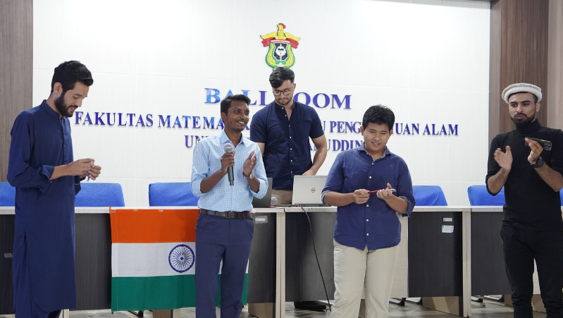 The International Office (IO), Hasanuddin University (UNHAS) recently held its monthly event, the Geography Series (G-Series), featuring India on November 5, 2024. This session was presented by Indian student Gautam Kumar Apurvakant, known as Kumar, who is a recipient of the Kemitraan Negara Berkembang (KNB) scholarship provided by the Republic of Indonesia. Mr. Kumar began with the traditional Indian greeting, “Namaste,” followed by the Indian national anthem. His presentation took the audience on a comprehensive tour of India, covering topics like history, religion, food, festivals, clothing, cultural heritage, and tourism.