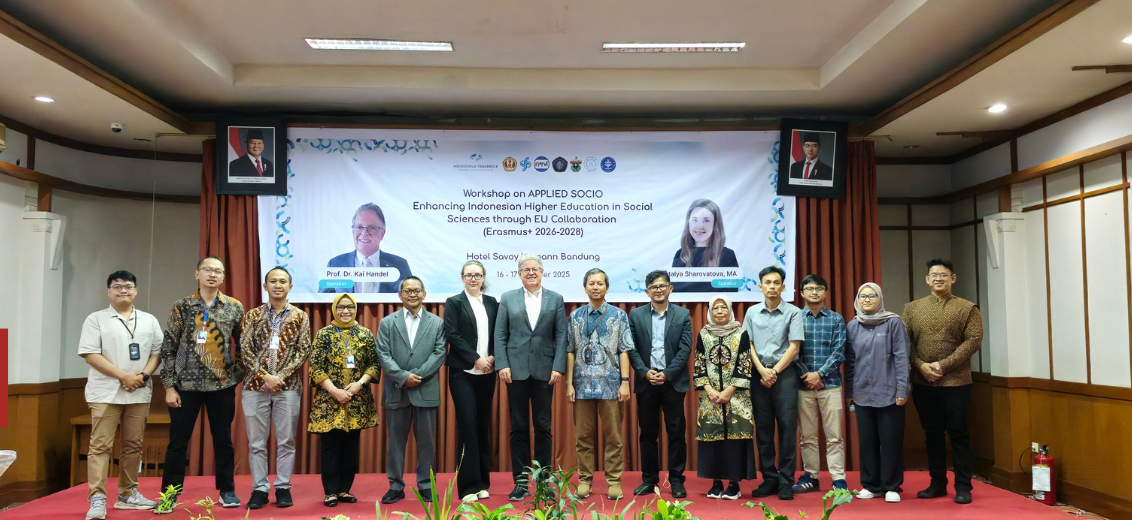 The workshop, held at the Savoy Homann Hotel, Bandung, carried the theme APPLIED SOCIO. It served as a platform for initiating the joint development of a collaborative proposal under the Erasmus+ CBHE 2026–2028 framework.