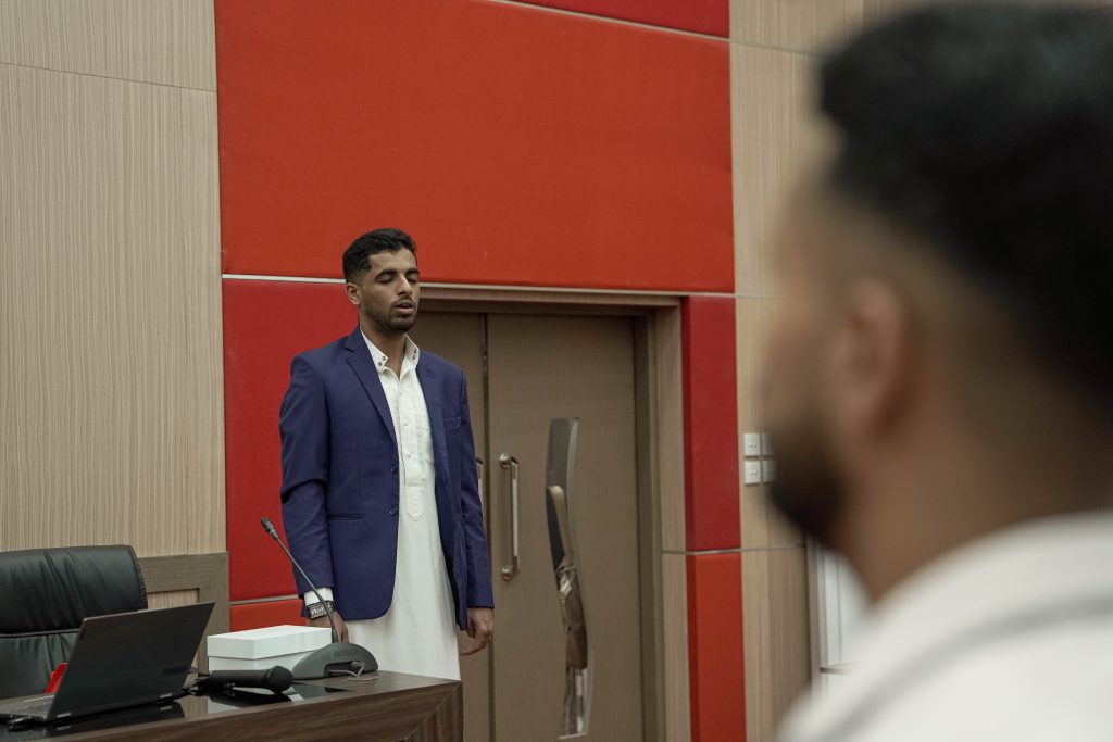 Duaa and Hussein exhibited a stunning portrayal of Yemen. The main event began with the national anthem of Yemen. After that, they continued by describing Yemen’s geographical position on a map of the world. Moreover, they went on to discuss Yemen’s traditional thoughts and multicultural societies, which included its traditional clothing, dance, music, architecture and cuisine. They showed various Yemeni society lifestyles as their presentation continued.
