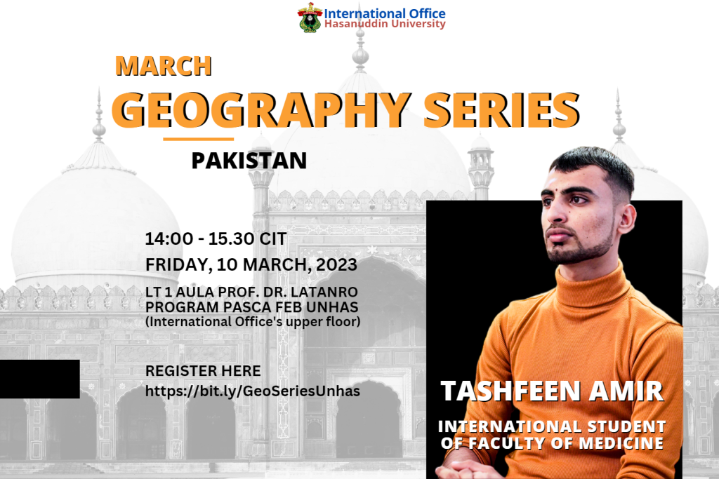 Dear bros and sis. We, International Office, have a new program called Geography Series that will be held every month. and we’re so excited to invite you to be a speaker in our brand-new Monthly Series. our bro Tashfeen will be the speaker for this month. and he’s going to share about his home country. and the audience will be our Local and International Students as well