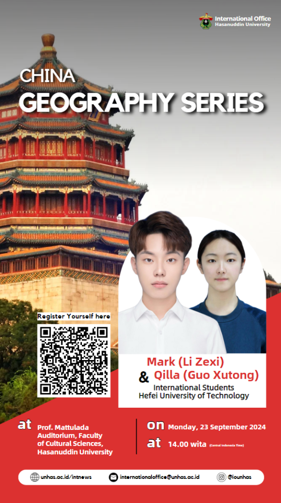 Hi everyone. The International Office – Hasanuddin University is back with another Geography Series! In this event, we’re introducing our international students from various countries.