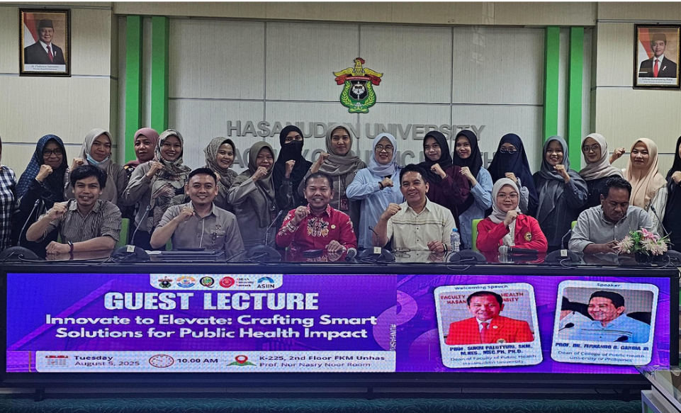 The Faculty of Public Health (FKM) at Hasanuddin University (UNHAS) once again opened a window to global insights for its academic community. Through a Guest Lecture titled “Innovate to Elevate: Crafting Smart Solutions for Public Health Impact”, FKM UNHAS invited participants to explore the importance of innovation in addressing the increasingly complex challenges of public health on 5 August 2025.