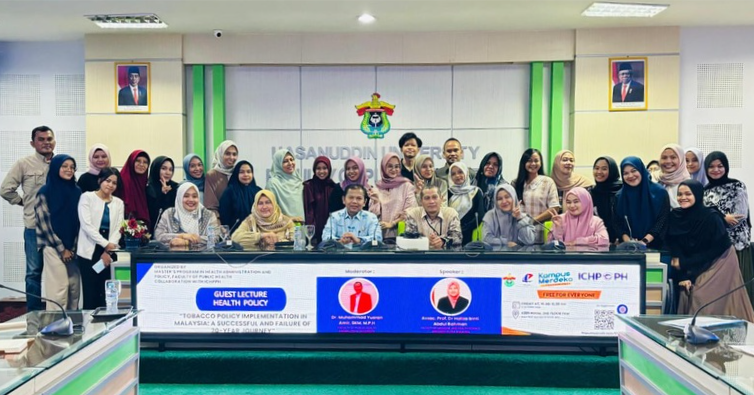 Prof. Haliza recently delivered a guest lecture at the Prof. Noor Nasry Noor Auditorium on “Tobacco Policy Implementation in Malaysia: Successes and Challenges of a 20-Year Journey.” Dr. Muhammad Yusran Amir, Head of the Master of Health Policy Administration Program at UNHAS, moderated the event and highlighted the partnership between UNHAS and University Putra Malaysia (UPM), aiming for ongoing collaboration in research and student programs.