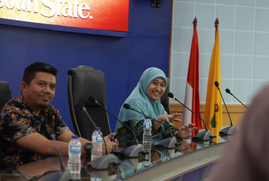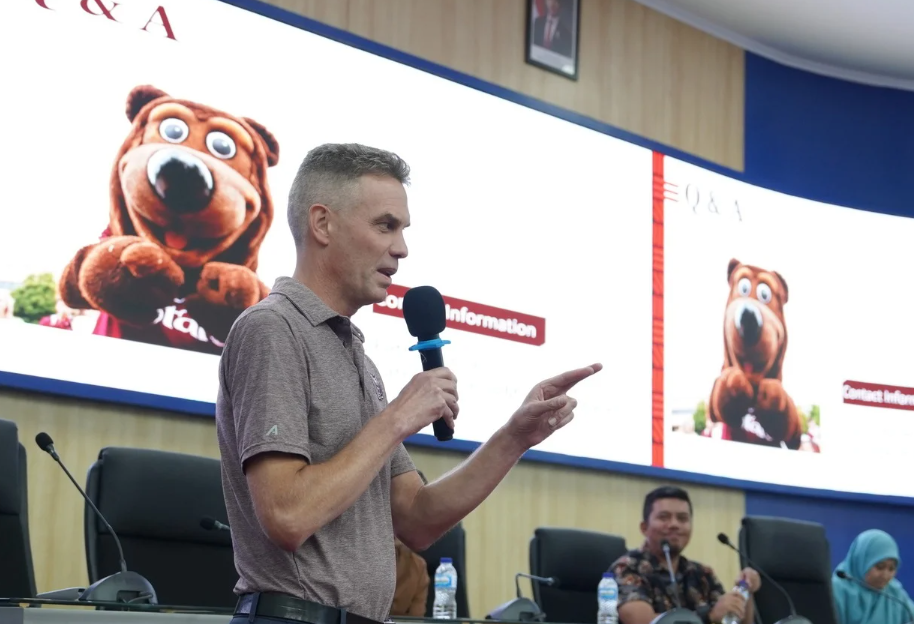 Two speakers were featured during the event: Fadhil Hidayat, EducationUSA Advisor, and Patrick Parnell, Director of International Services at Missouri State University (MSU). Mr. Parnell introduced MSU, represented by its bear mascot, and presented a range of topics, including study programs, English proficiency requirements, on-campus housing, and student life for international students. His presentation captivated the audience, prompting an active question-and-answer session.