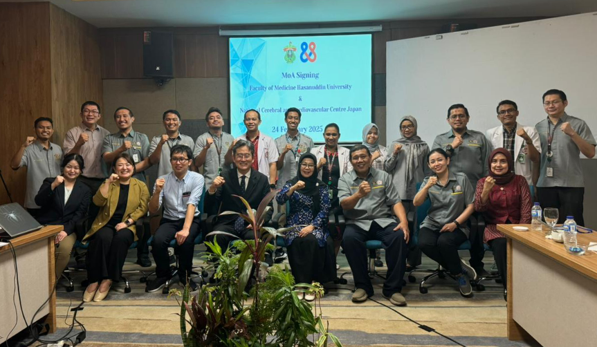 The Faculty of Medicine (FK), Hasanuddin University (UNHAS), has officially established a partnership with the National Cerebral and Cardiovascular Center (NCVC), Osaka, Japan, in the fields of medical research and education. This collaboration was marked by the signing of a Memorandum of Agreement (MoA) at UNHAS Hotel & Convention 24 February 2025, Makassar. This milestone strengthens international cooperation, particularly in research related to neurological and brain diseases.
