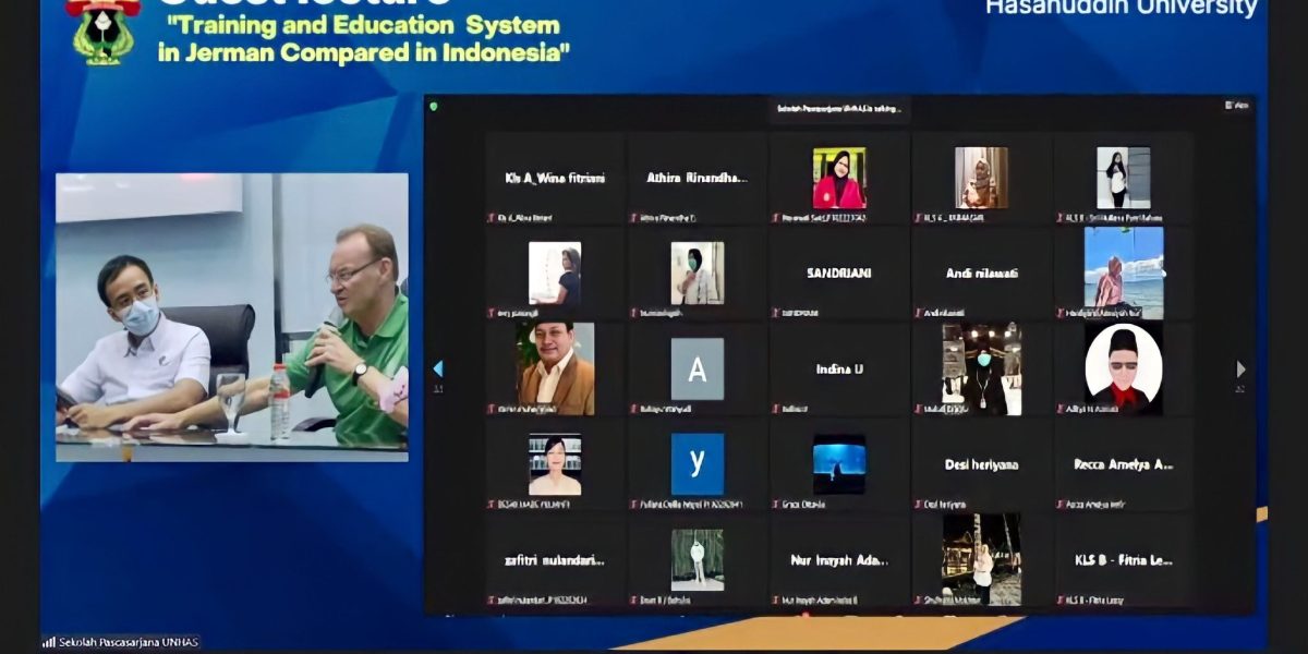 The activity was officially opened by the Dean of the Unhas Postgraduate School, Prof. Dr. Budu, Ph.D., Sp. M., (K)., M.Med.Ed, which was hosted by Muhammad Akbar Walenna, S.T., M.Sc., Ph.D., as moderator. After the opening, the event continued with the presentation of material by the guest lecturer. Lutz explained the process of graduatiion as a health worker in Germany, which must first carry out an exam and a year of practice. He revealed that most students in Germany carry out education for five years to be a health worker.