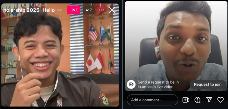 The International Office (IO) of Hasanuddin University (UNHAS) hosted a HELLO IO live Instagram session featuring Kumar Apurvakant Gautam, a recipient of the Kemitraan Negara Berkembang (KNB) Scholarship from India, currently studying at the Faculty of Public Health.
