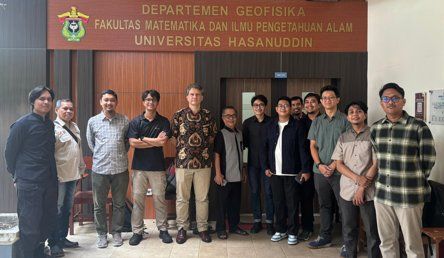 The Department of Geophysics, Faculty of Mathematics and Natural Sciences (FMIPA), Hasanuddin University (UNHAS) welcomed a visit from three international researchers on 6 August 2025. They were Dr. Abang Mansyursyah Surya Nugraha and Dr. Ignatius Ryan Pranantyo, research fellows, from the Earth Observatory of Singapore, Nanyang Technological University, Singapore; and Dr. Jędrzej Majewski, an Associate Professor from Adam Mickiewicz University, Poland. This visit was part of their research mission in Sulawesi in collaboration with UNHAS, Syiah Kuala University in Aceh, and Samudera University in Aceh aiming to deepen the understanding of the historical occurrence of tsunamis in the Sulawesi region.