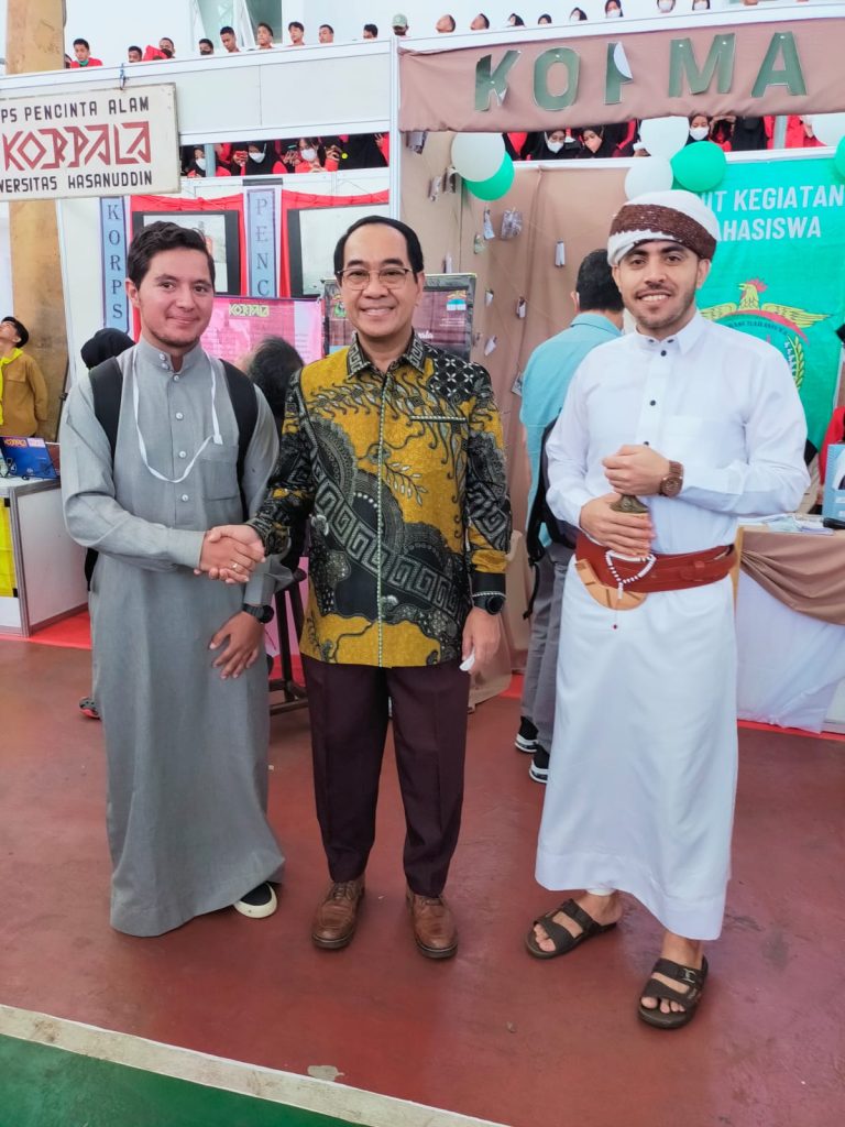 The Rector of Unhas took the time to meet the international students at their booth and saw their traditional clothes. The students felt very happy to be visited by the Rector.