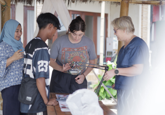 On the second day, participants engaged in storytelling through drawing, sharing personal relationships with water and collaboratively producing a 2 m x 1 m artwork to visualize their narratives. The third day included a visit to Sokola Pesisir near the Center Point of Indonesia (CPI), where participants discussed land reclamation impacts with school administrators and students. They then joined a workshop on stop-motion animation as an accessible medium for environmental messaging. The fourth day focused on coral reef conservation and transplantation in partnership with Sangkarrang Ocean Dive (SOD), which has led rehabilitation and environmental education around Barrang Lompo Island.