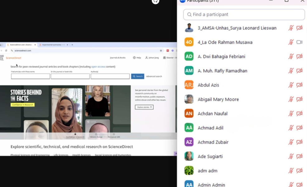 Having access to credible and internationally reputable academic databases is crucial for improving the quality of research and publications for lecturers, researchers, and students at Hasanuddin University (UNHAS). Over the two years since UNHAS began subscribing to ScienceDirect (SD), its publication output has seen a significant increase. This was highlighted by Dr. Fierenziana Junus, Head of the UNHAS Library, during her opening remarks at the webinar held on January 15, 2025, attended by more than 400 participants, most of whom were UNHASlecturers and students.