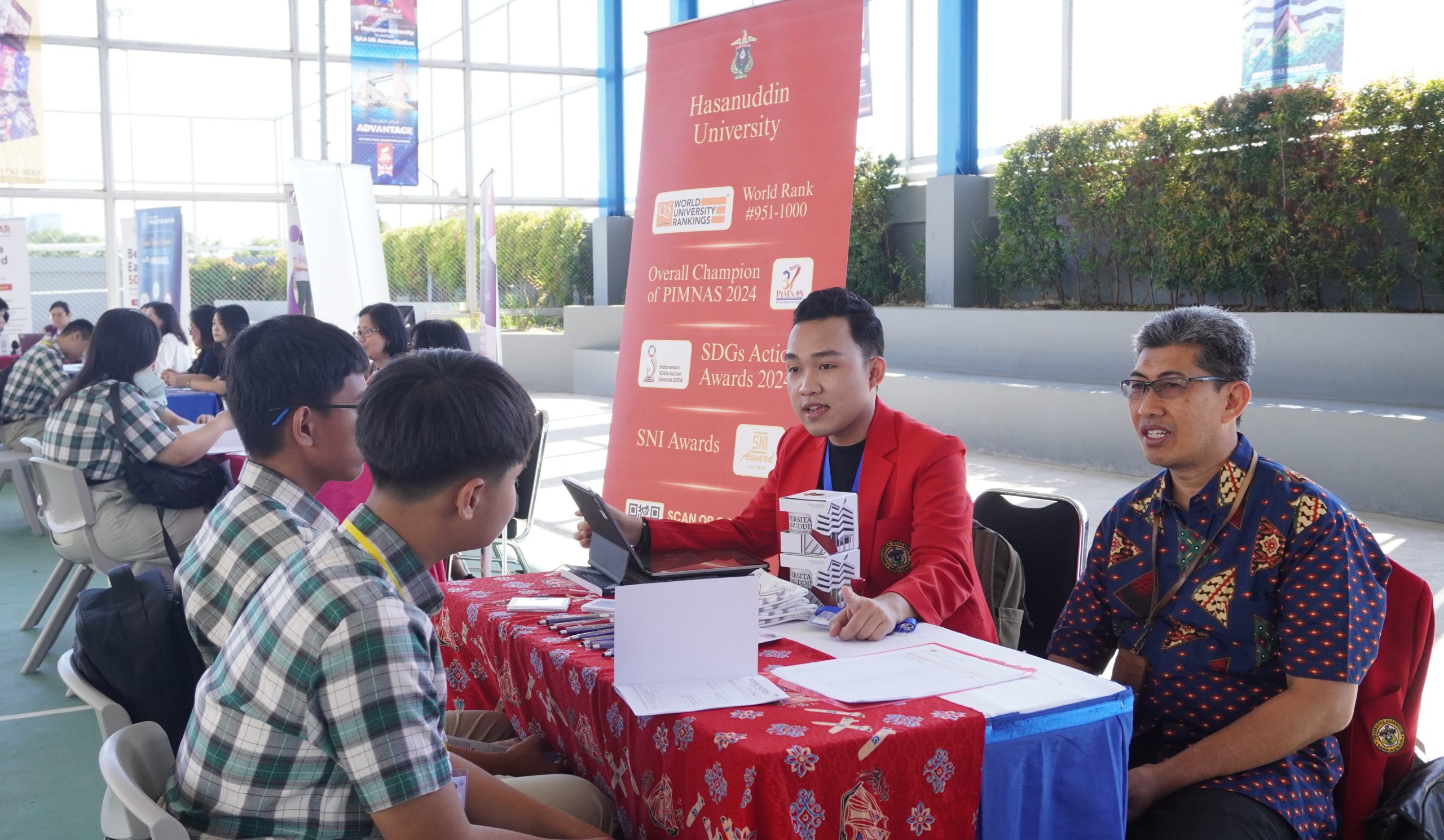 In addition to promoting their universities at designated booths, all participants were required to deliver presentations highlighting their excellence. Representing UNHAS were Muhammad Ridwan, M.A., Secretary of IO, and Nurul Ichsani, M.Si., Head of the Admission Office. The UNHAS presentation was scheduled for four sessions on Friday, running from morning until just before Friday prayers. On Saturday, UNHAS continued its participation by promoting the campus through its booth, though no further presentation sessions were held.
