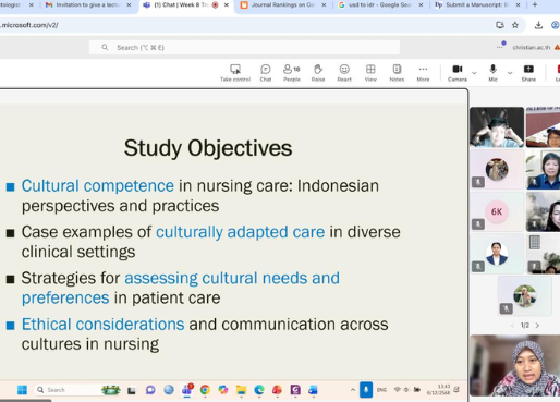 On the 6 December 2025, a faculty member from the Faculty of Nursing (FKep), Hasanuddin University (UNHAS), Andi Masyitha Irwan, Ph.D., delivered a guest lecture entitled “Transcultural Nursing” for Master of Nursing students at Christian University of Thailand (CUT), Thailand. The lecture lasted for two hours and consisted of a sharing session followed by a question-and-answer session.