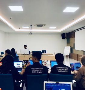 International office of Hasanuddin University assigned the student volunteers to arrange Bahasa Class module for international students in Unhas. The student volunteer has a weekly meeting with international students to study Bahasa for daily purposes. This is an innovative movement initiated by student volunteers and international students. International office of Unhas strongly support to this activity.
