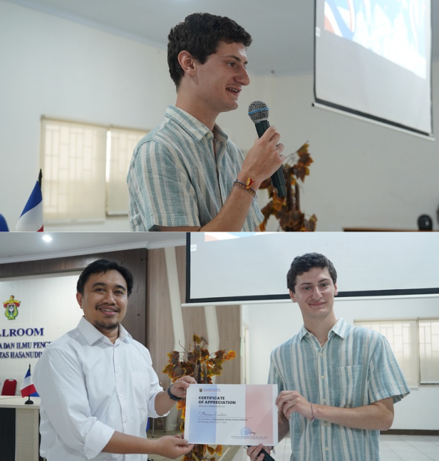The International Office (IO) of Hasanuddin University (UNHAS) successfully hosted their monthly Geography Series (Geoseries) on Monday, 30 March 2025. Held from 10:00 AM to 12:00 PM at the Ballroom Science Building, Faculty of Mathematics and Natural Sciences (MIPA), the event serves as a strategic platform for international students to introduce their home countries to the campus community. This edition featured Florian Landais, a French student currently interned at the Department of International Relations, Faculty of Social and Political Sciences (FISIP), who will be part of the UNHAS community until the end of the semester.