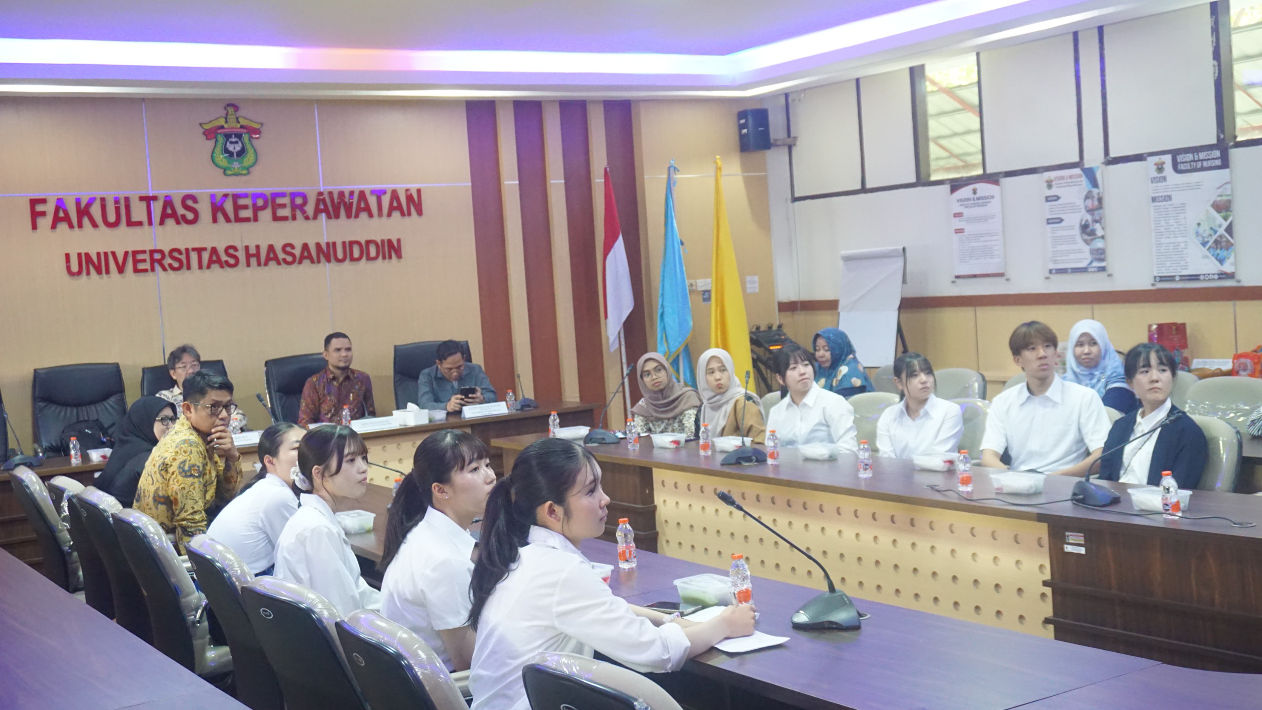 The delegation was warmly welcomed by the Vice Dean for Academic and Student Affairs, Syahrul, S.Kep.,Ns.,M.Kes.,Ph.D and the Vice Dean for Research and Partnership Affairs, Dr. Takdir Tahir, S.Kep.,Ns.,M.Kes.