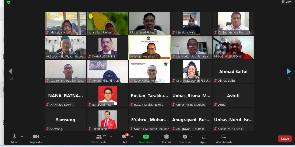 The webinar regarding the collaboration and scholarship opportunities the Vice-Rector held Saudi Arabian Universities for Partnership, Innovation, Entrepreneurship, and Business of Hasanuddin University (UNHAS) on Monday, April 10, 2023. The Director of Partnership, the host of the webinar, Dr. Ansariadi, officially opened the webinar. The academic staff from various study programs, including the Department of Mining and Geology of Engineering Faculty (FT) and the Department of Arabic Literature of Cultural Sciences Faculty (FIB), attended this event. In addition, this webinar was presented by Dr. Badrus Sholeh, Indonesian Education and Culture Attache of the Indonesian Embassy in Riyadh, the capital of the Kingdom of Saudi Arabia (KSA).